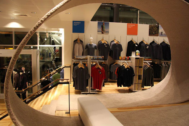 Icebreaker's USA head office is located in Portland, Oregon and this store showcases the brand. Located on a busy pedestrian corner, a ribbon of carpet was treated as an extension of the public space of the city to connect the two street levels together. The twisted carpet loop offers a changing relationship as people move through the space and provides a sense of inhabitation and interaction.....more